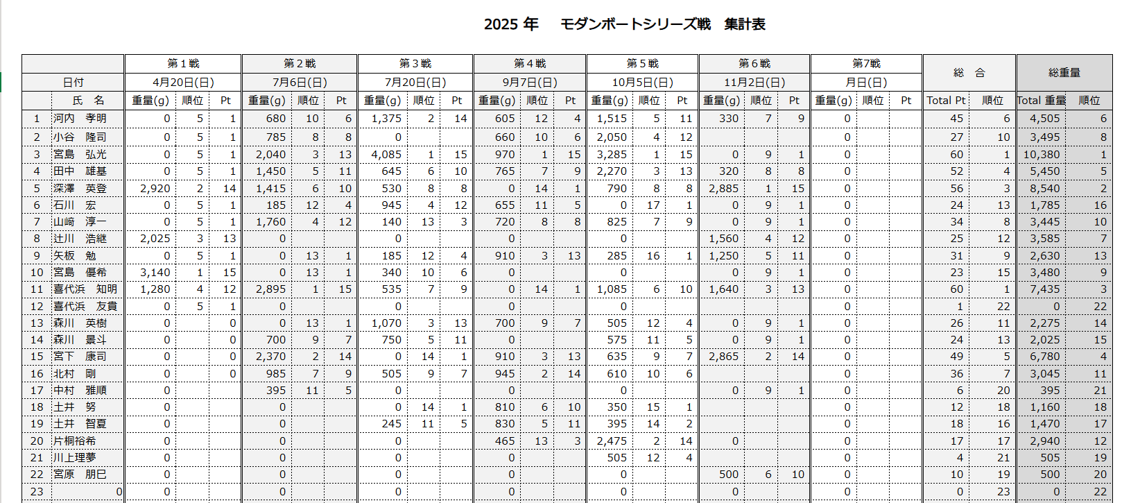 深澤選手と宮下選手のトップ争いはわずか20g差という大接戦!最後まで目が離せない展開でした。