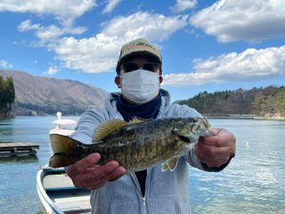 釣ったのはロイヤルシャッドのジグヘッドとシャッド、1/20ozジグヘッドボトストでのメス狙いがうまくいかなかったのでオス狙いに切り替えて水深2mぐらいで1本、